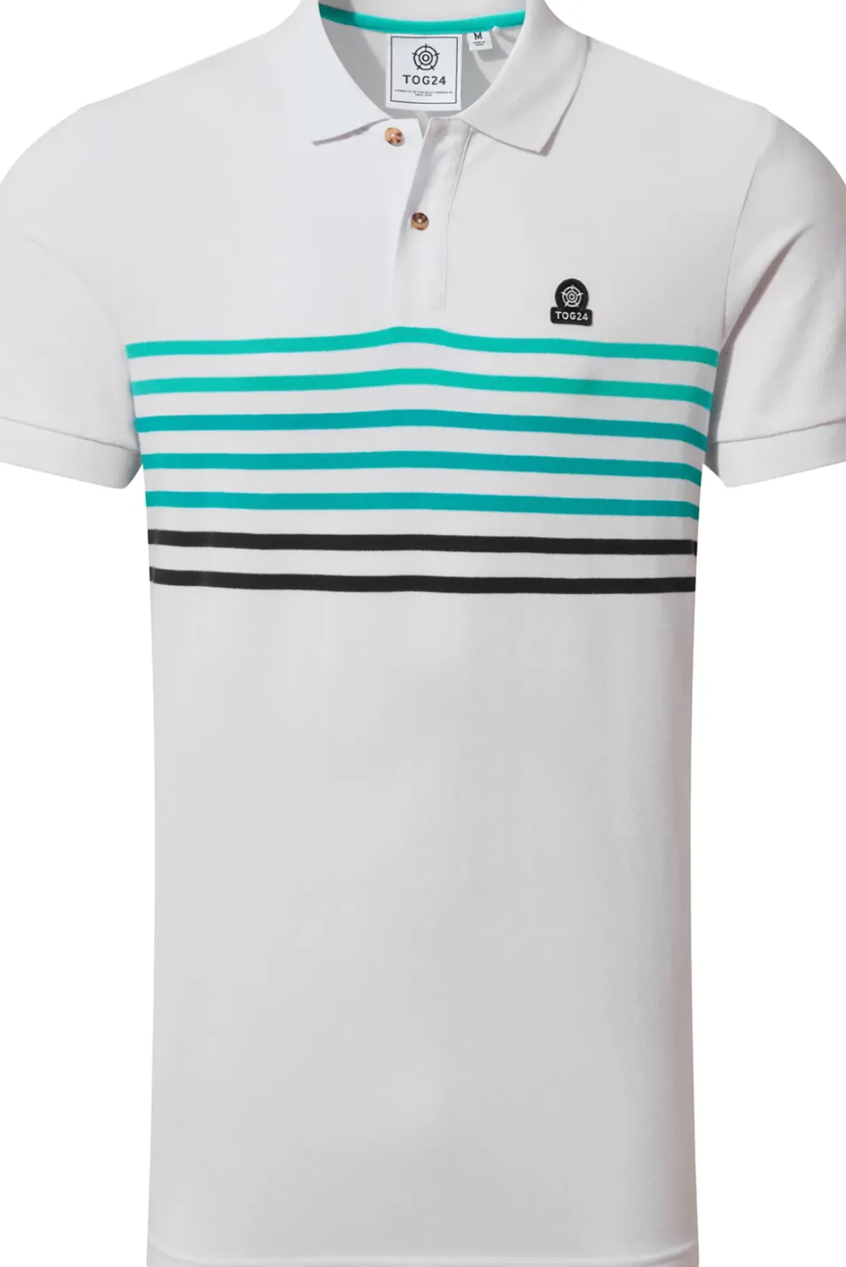 Perfect For A Round Of Golf Or For Teaming With Shorts And Jeans For Any Occasion, Our Laverton Polo T-Shirt Is A Summer Wardrobe Essential. This Classic Polo Top Comes In Supersoft 100% Sustainable Textured Cotton Pique That Feels Comfortable Against The Skin And Is A Better Choice For The Environment. Laverton Was Designed By Our Team In West Yorkshire And Features A Band Of Horizontal Stripes Across The Chest In Tonal Colours Inspired By A Day Trip To Picturesque Whitby Bay. The Finishing Touches Are Branded Fastening Buttons Down The Front And An Embroidered Tog24 Rose Badge On The Chest.