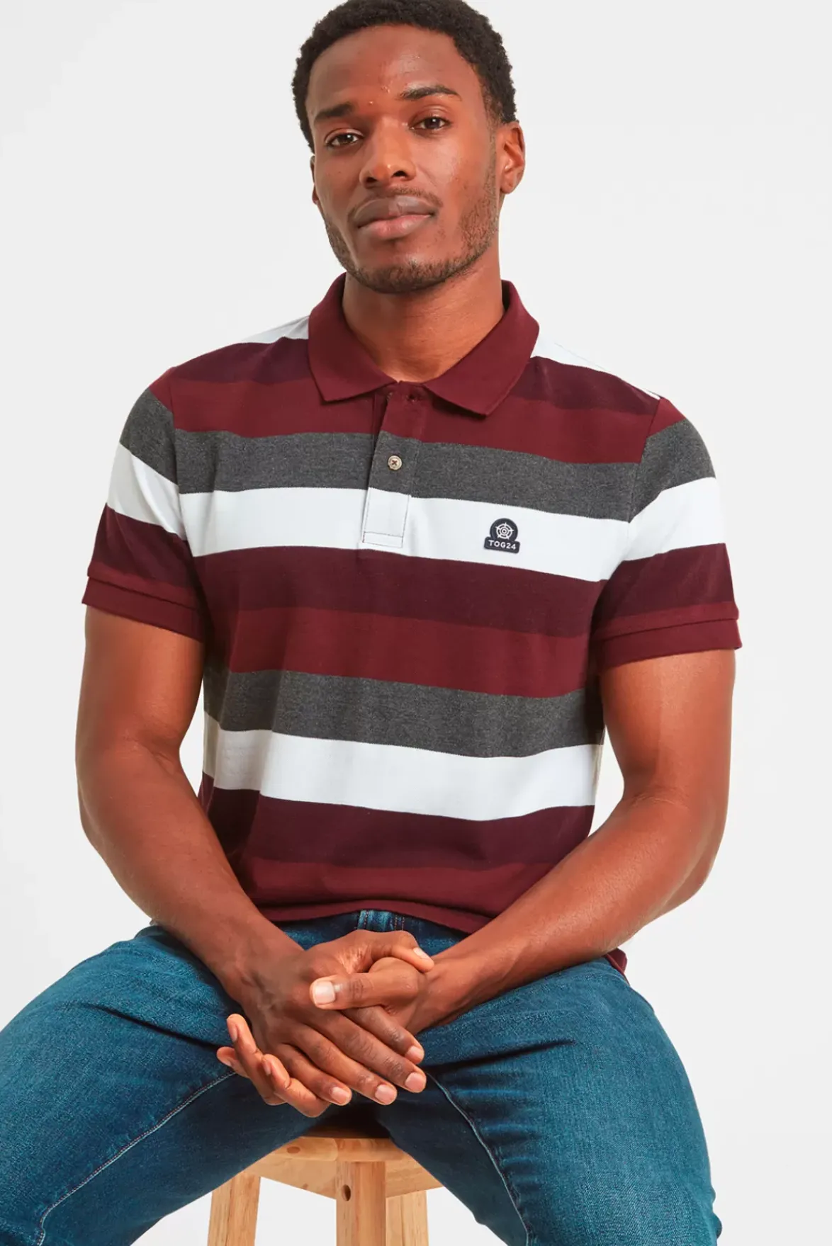 Stand Out From The Crowd In Our Flaxby Polo Shirt With Bold Horizontal Stripes In Colours Inspired By Yorkshire’s Dramatic Landscape. This Polo T Shirt Comes In Textured Cotton That Is Soft To The Touch And Has Two Fastening Buttons At The Neck And Flat Knitted Ribbed Collar And Cuffs. The Graduated Hem Is Longer At The Back And There Are Split Vents At The Side For A Tapered Fit. The Stripes Are Dyed Into The Yarn, So They Won’T Fade In The Wash, And Flaxby Is Finished With A Discreet Embroidered Yorkshire Rose Emblem On The Chest.