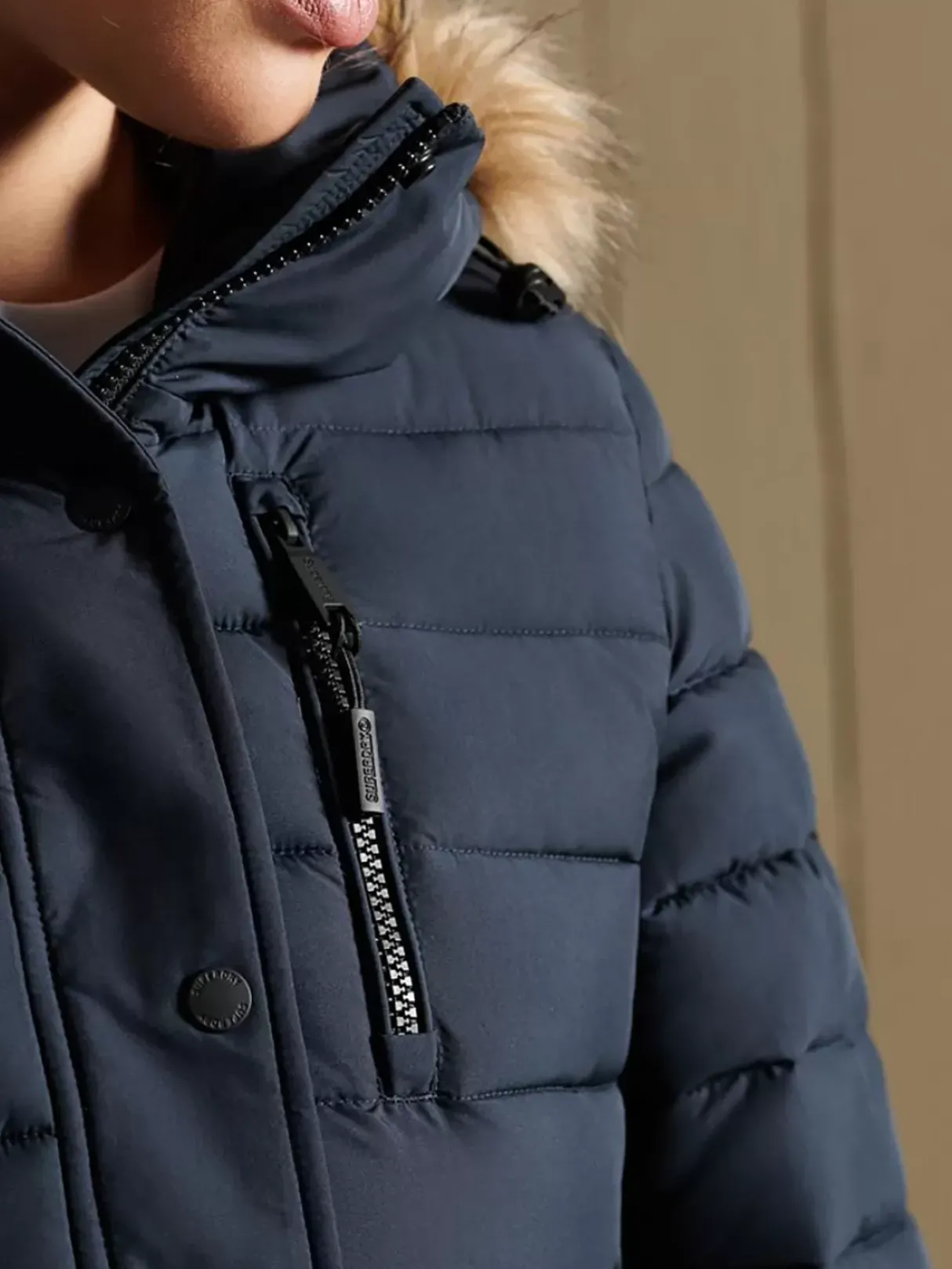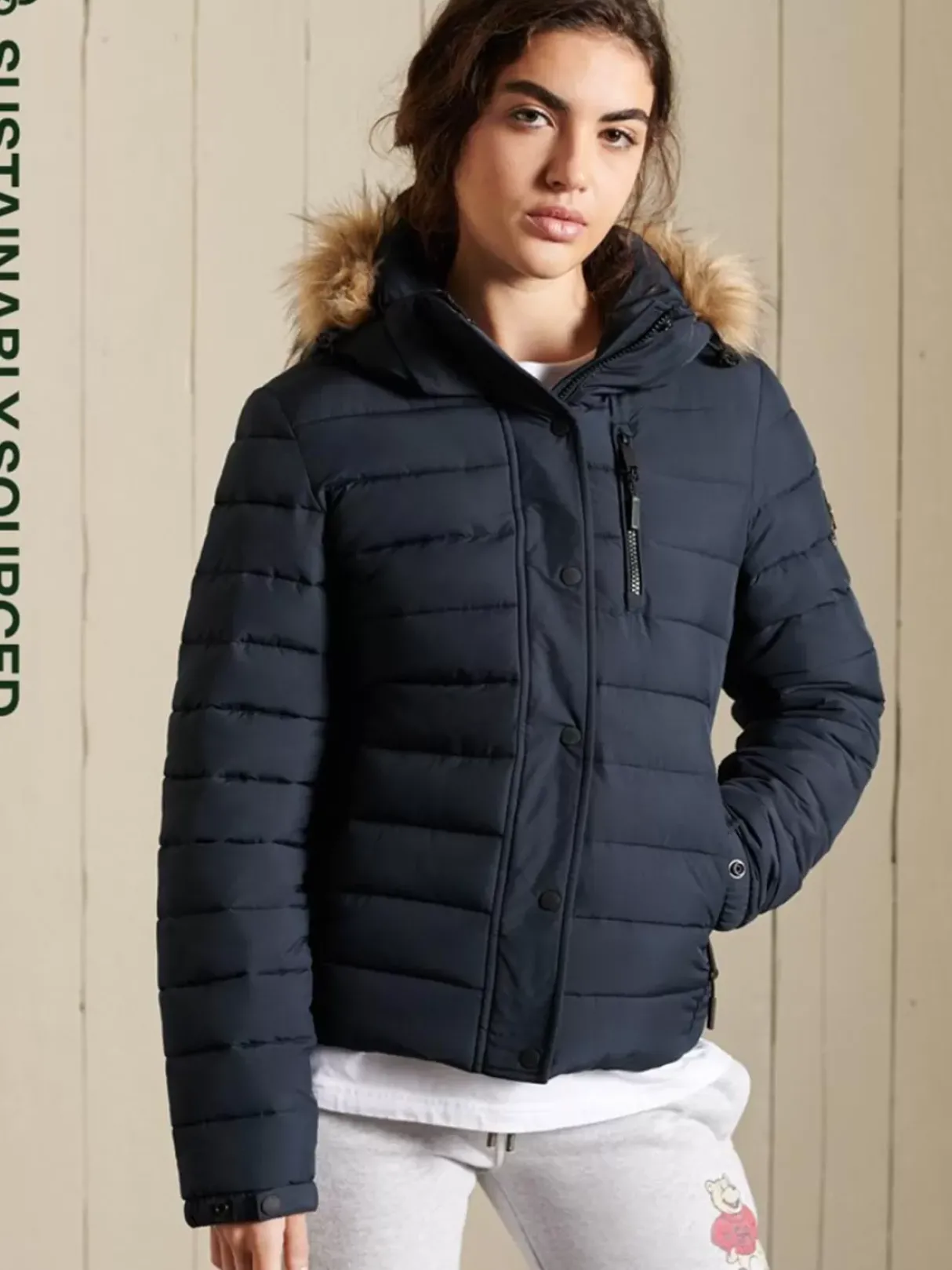 Get Cosy This Season With The Classic Faux Fur Fuji Jacket. A Minimalist Yet Authentic Take On A Classic Padded Jacket, And Still Just As Irresistibly Warm And Comfortable. Slim Fit – Designed To Fit Closer To The Body For A More Tailored Look, Detachable Hood, With A Bungee Cord And Faux Fur Trim, Three Zip Pockets, Popper Cuffs, Signature Superdry Badge. The Padding In This Jacket Is 100% Recycled, Each Jacket Contains Up To 30 Recycled Bottles, This Avoids These Bottles Being Sent To Landfill Or Polluting Our Oceans.