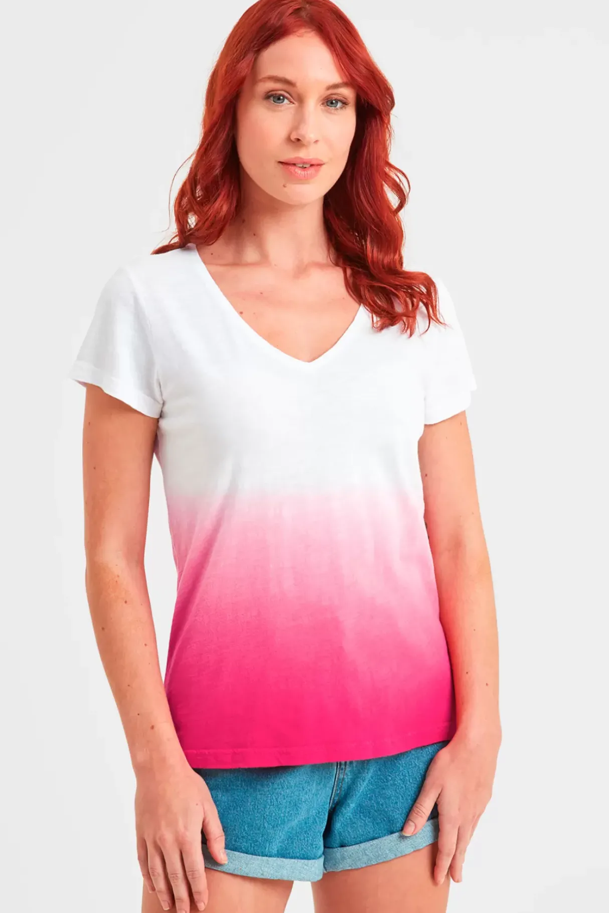 Cool And Comfortable, Our Alexa Women’s T-Shirt Is Dip Dyed To Give A Distinctive, Graduated Two Tone Effect. This Casual Tee Has A Flattering V Neckline And Is So Easy To Style Teamed With Shorts, Skirts Or Your Favourite Pair Of Jeans For A Relaxed Summer Look. Alexa Comes In Supersoft 100% Sustainable Cotton That Feels Velvety Soft Against The Skin, Making It A Better Choice For The Planet Too. Designed By Our Team In Yorkshire In Colours Inspired By A Glorious Sunrise Over Whitby Bay, This Eye-Catching Top Is Proudly Finished With A Small Woven Tog24 Rose Label At The Hem.