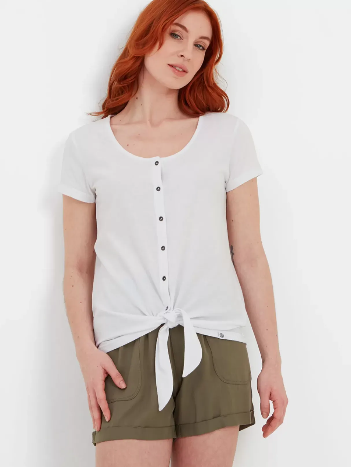 With Its Longer-Line Hem Tie And Feminine Neckline, Our Millie Cotton Top Is Much More Than ‘Just A Tee’. Supersoft And Made From A Sustainable Cotton Blend To Help Keep You Cool, It Has A Deep, Softly Scooped Neckline And Small Buttons Down The Front. Millie Drapes Beautifully Over A Skirt, Shorts Or Lightweight Trousers. It’s Finished With The Iconic Yorkshire Rose Woven Label Which Is Discreetly Attached To The Hem.